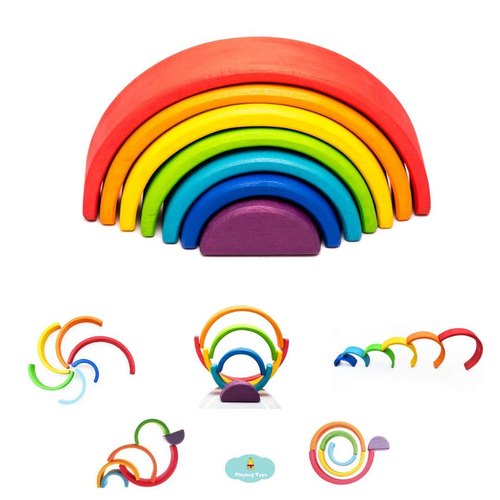 Kids can use the colorful arches as bridges, tunnels, seesaws, fences, houses, doll cradles, caves, and many more. Let children learn about colors, refine their hand-eye coordination, fine motor skills. Develop their creative abilities and immerse them in critical thinking and deep play.