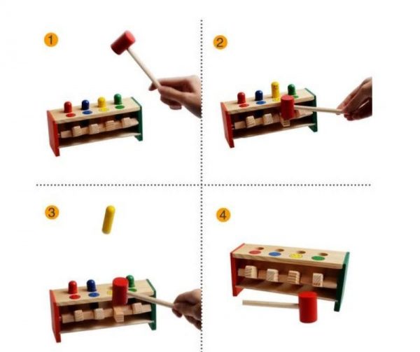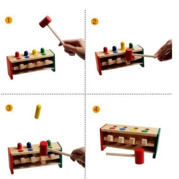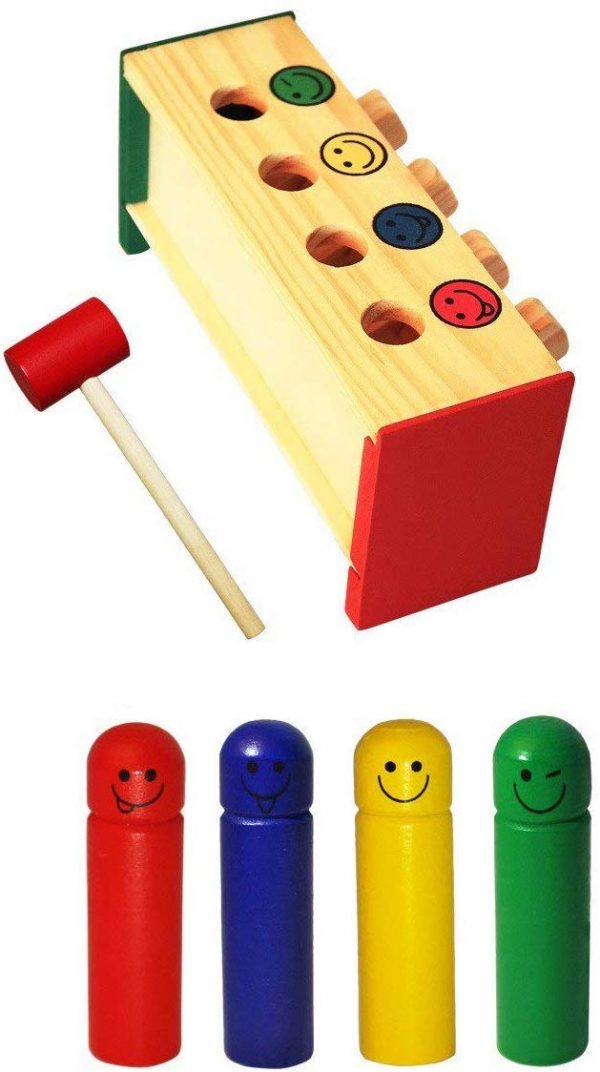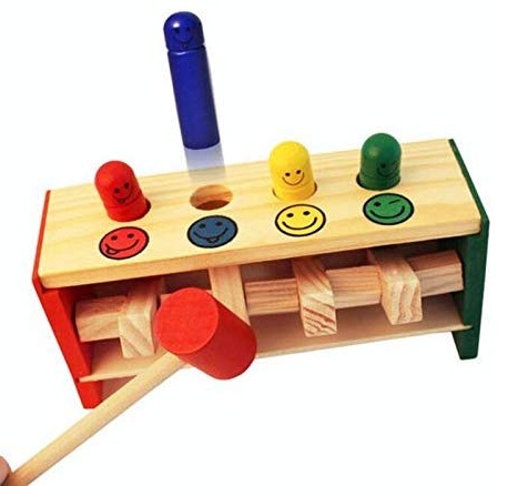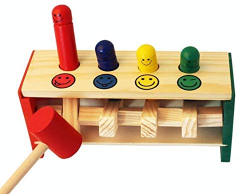 Strike the blocks with the Hammer and watch the funny men jump in the air !!! Develops Fine Motor Skills, understand cause and effect and to work on hand eye coordination.