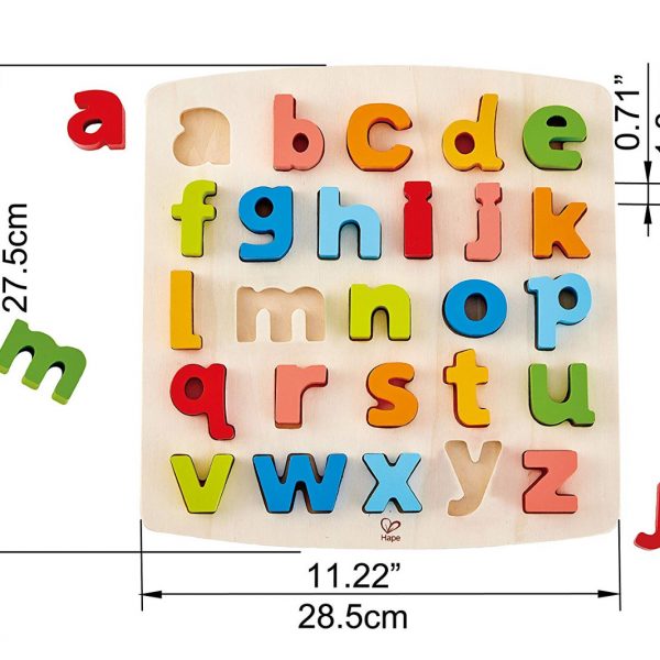 a, b, c, d! Learning the alphabet is great fun! Can you learn the letters right through to z? This colorful puzzle provides children with an introduction to small letters to take their first steps towards reading and writing. Chunky Alphabet Puzzle in bright colours. Each piece is easy to handle. Helps to develop hand-eye coordination and shape matching skills.Playing and learning go hand in hand with the educational collection.
