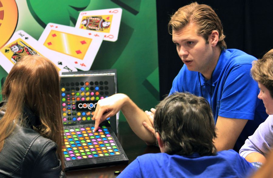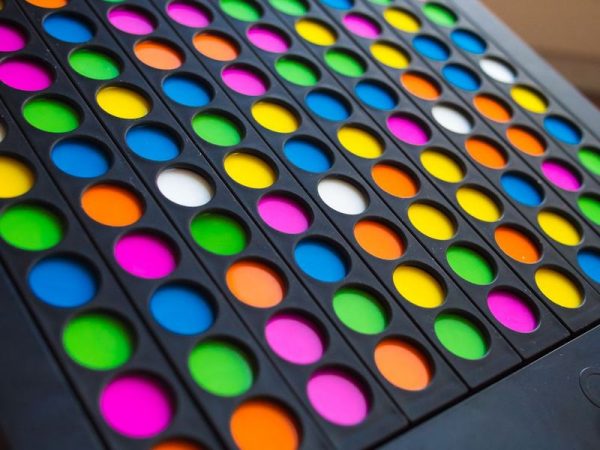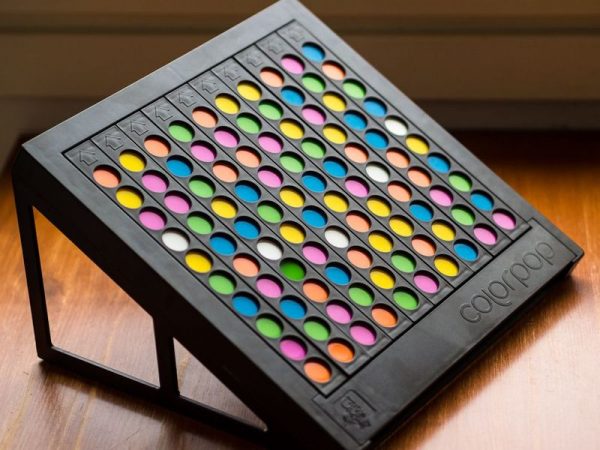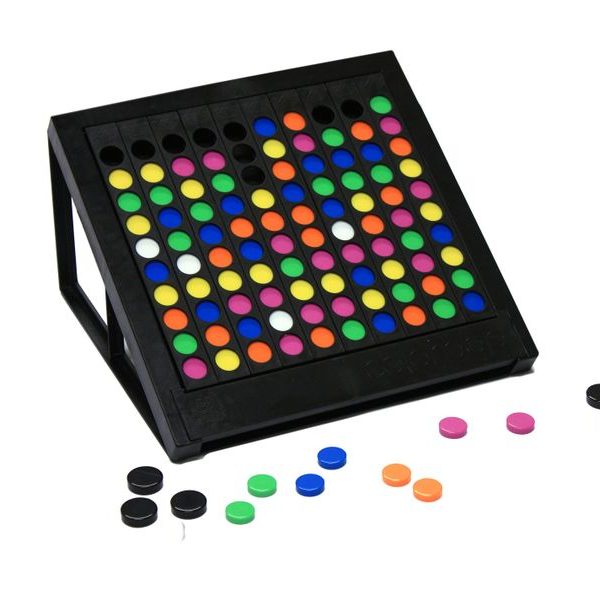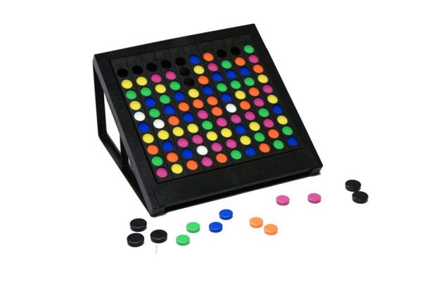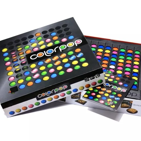 Each player is the only one who knows which color they want to eliminate from the game board. Players take turns removing groups of counters of the same color. Just press on the counters then watch as they slide out. The counters above them slide down to take their place. You have to be crafty to completely remove all the counters of your color. if your opponent figures it out, they might block you. This includes a game board with 100 color pops.