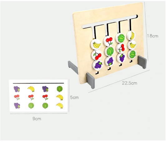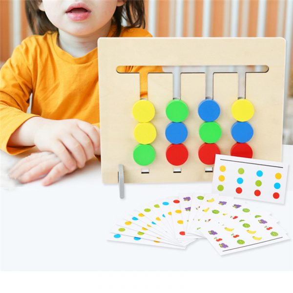 Kids can randomly extract a card and start to move it up, down, left, and right to match the card design.