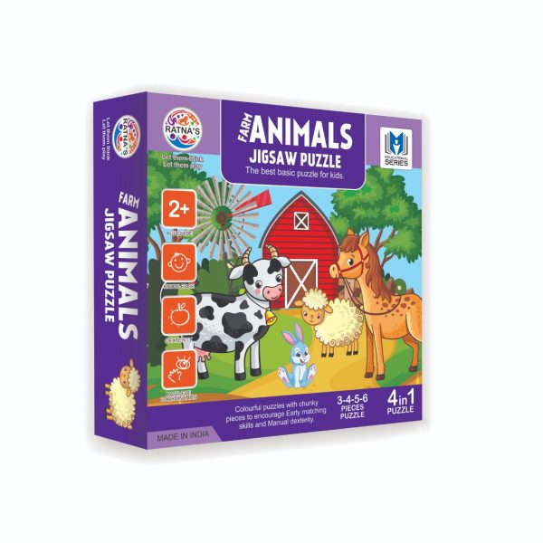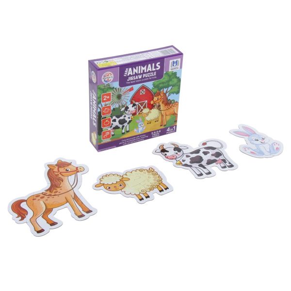 Farm Animals Jigsaw Puzzle Box includes 3-4-5-6 puzzle pieces.