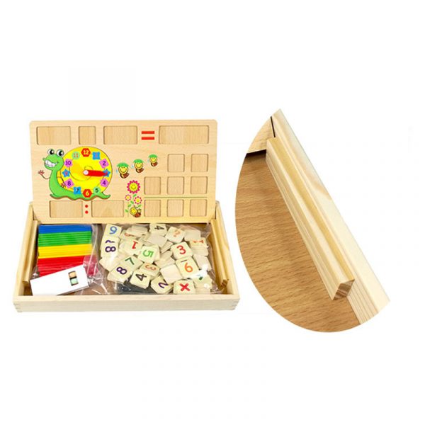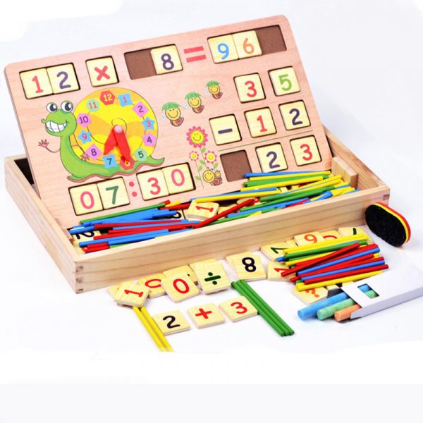 Multi-Functional Digital Computing Learning Box is an interesting toy for early mathematical learning, children can also learn about time, and it comes with a clock to learn time, blackboard, chalks and eraser for kids to drawing or writing. This tool helps kids to learn about the basic arithmetic operations, such as addition & subtraction, multiplication & division. The sticks are all dyed different colours, and the numbered blocks are very well made and sturdy.