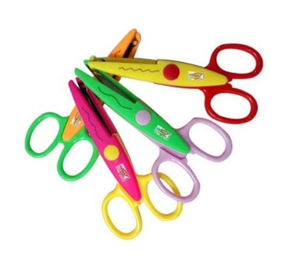 Includes 4 different pattern scissors suitable for all crafting projects.Each scissors cuts out a different zig zag pattern.It is sharp enough to cut only papers. Safe for hands.Has child safe plastic body and soft metal edges. Improves dexterity and fine motor skills.