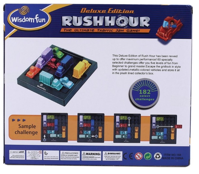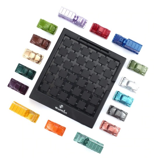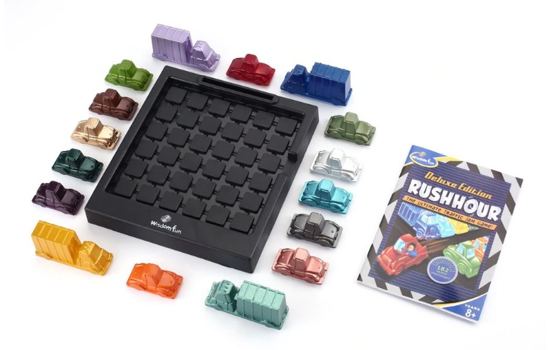The Player has to move the cars and trucks in such a way that the Red Car “X” comes out through the opening in the playing grid frame.