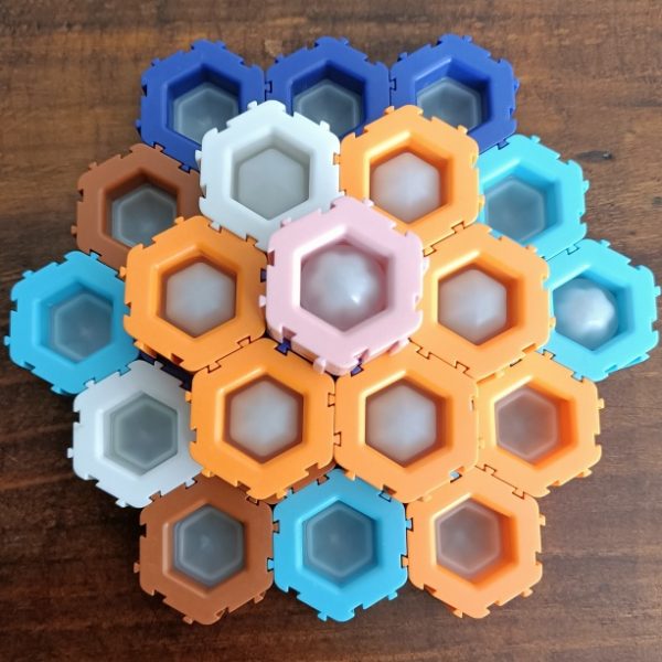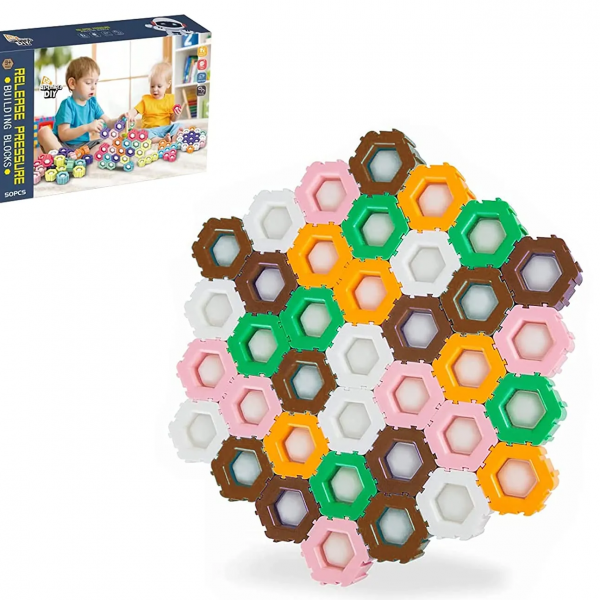 Each push pop bubble building block set includes 50 pcs of independent hexagon blocks. Each individual puzzle bubbles blocks with splicing rails on 6 sides. You can combine and splice them into any shape, just like playing with building blocks and puzzles. You can also use them as bubble toys to push, they will make a slight popping sound, flip them up and start again. Give full play to your imagination and create more new ways to have more fun! Pop toy is not only a multi-functional puzzle DIY splicing bubble toy, it can also relieve stress, reduce anxiety and distract people from behaviors such as nail-biting and hair play. Bright colors and pleasant sounds can please anyone, and it is very suitable for people with ADHD and autism.