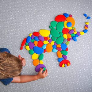 The stress balls can be moved around using the empty hole, which allows the puzzle to be jumbled. Move all of the balls back into their proper places to solve the rainbow ball puzzle!