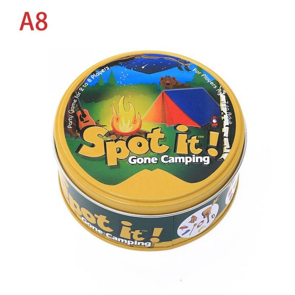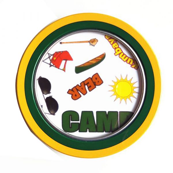 The great outdoors! Open skies, a crackling fire, and a rousing game of Spot it! to keep your eyes peeled and your reflexes quick. You never know when you may spot a bear! Spot it! is a one-of-a-kind card game for every generation. It consists of 55 circular cards each decorated with eight symbols varying in size and orientation. Here’s the catch: there is always one and only one matching symbol between any two cards. Spot it to win! Race to find matches between gears, critters, nature, and more. Whether you’re cozy in a cabin, roughin’ it in a tent, or just in your own backyard, spot it! Gone Camping captures everything you love about camping out. This sturdy little game tin is easy to take along on all your adventures and guarantees instant fun!