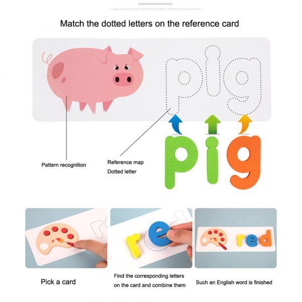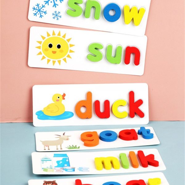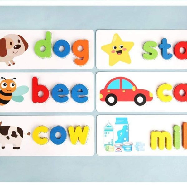 Kids will love sorting the wooden letters and putting them on the cards to form a word! It is a great way for them to learn the alphabet and words. It promotes color recognition, hand-eye coordination, and problem-solving skills, and it helps build the foundation for a lifetime love of learning!