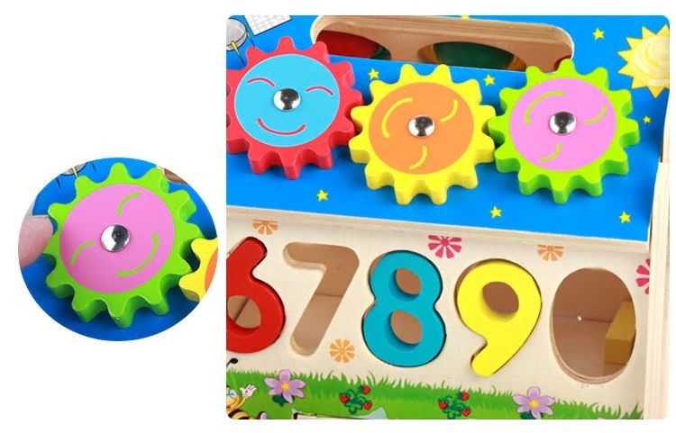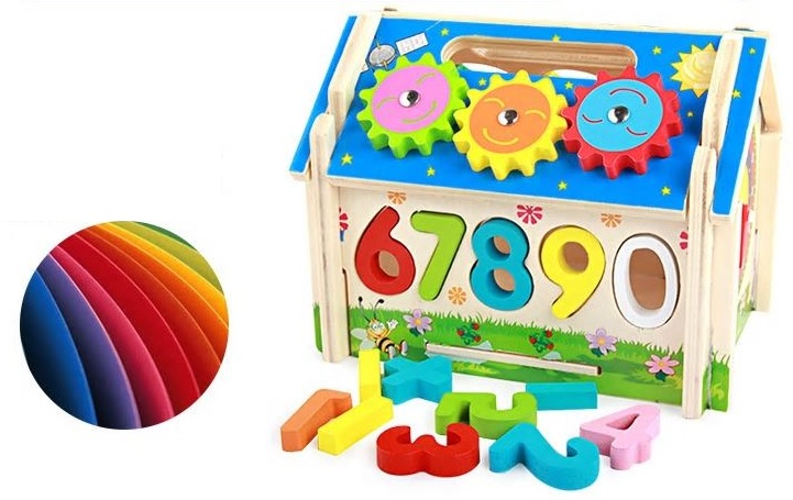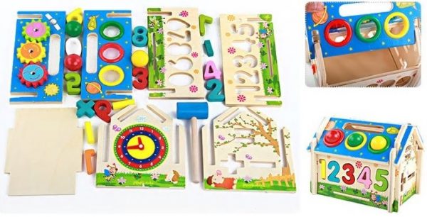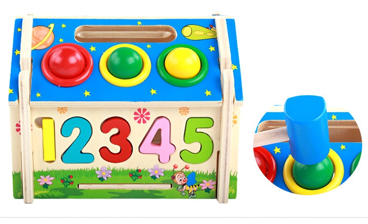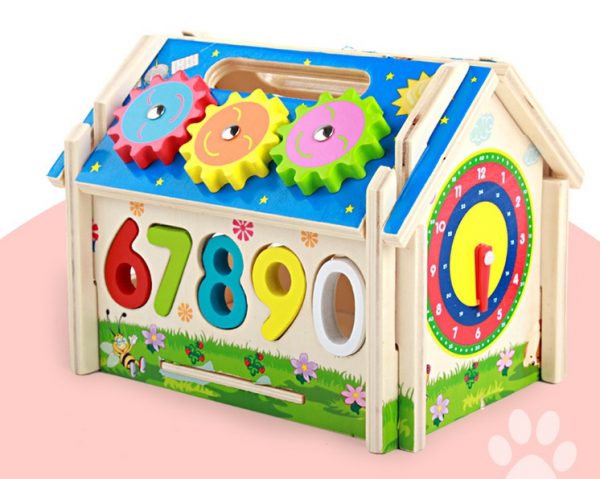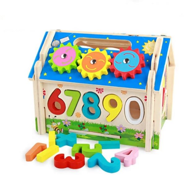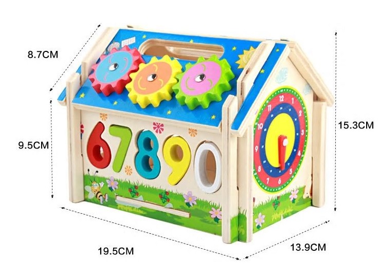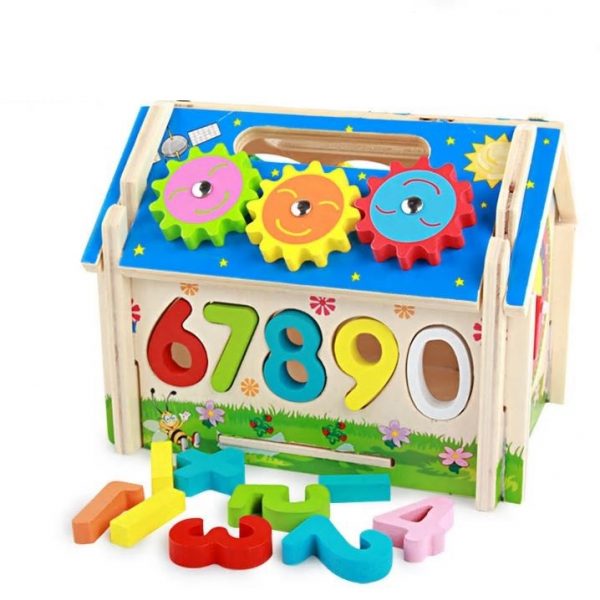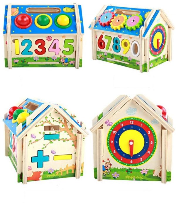 Creative wooden house toy, shape sorter wisdom house with pounding bench ball and hammer for kids,educational digital number, time clock, shapes and symbol cognition wisdom house for kids and toddlers!!!