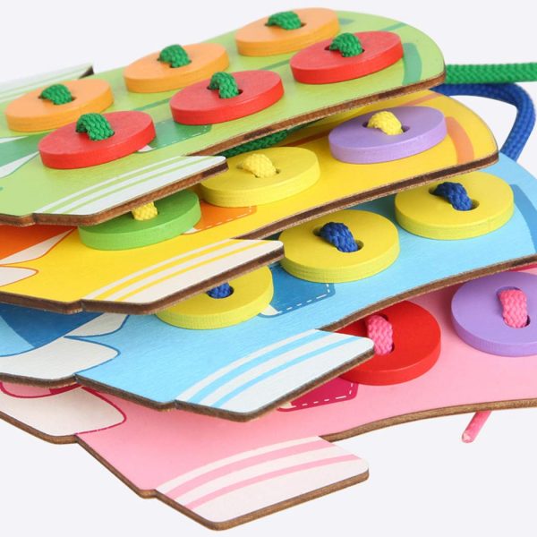 Promotes fine motor skills, color recognition, and hand-eye coordination. Montessori and Waldorf both emphasize lacing.
