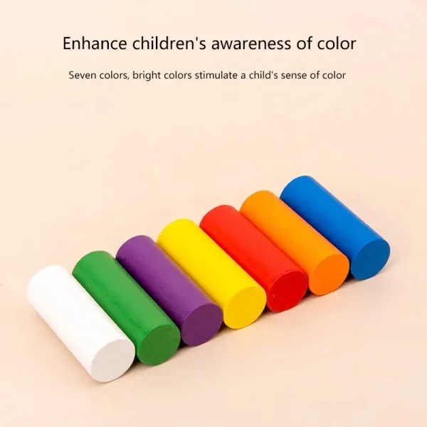 The seven color cylinders were grouped together and the children were trained by shuffling the order of colors.