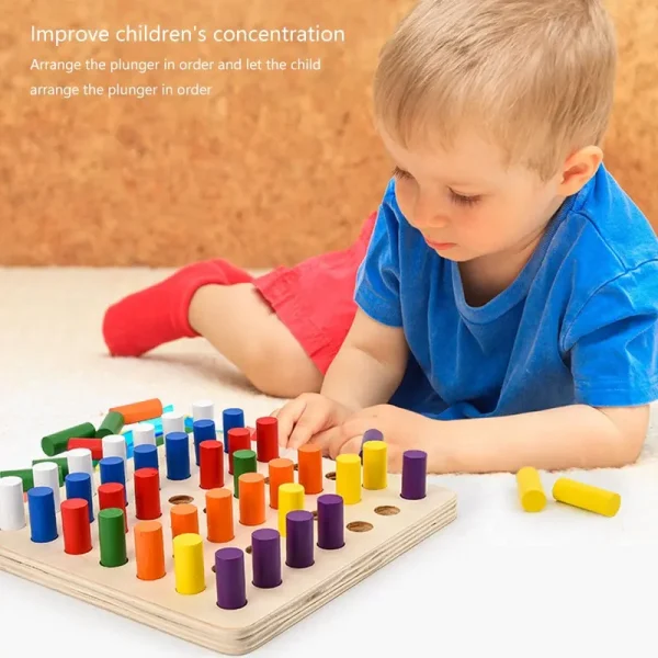 A fun activity where one has to stack the various colored cylinders in an order.This game is designed to develop hand-eye coordination, concentration and those seven bright colors stimulate child’s color perception.